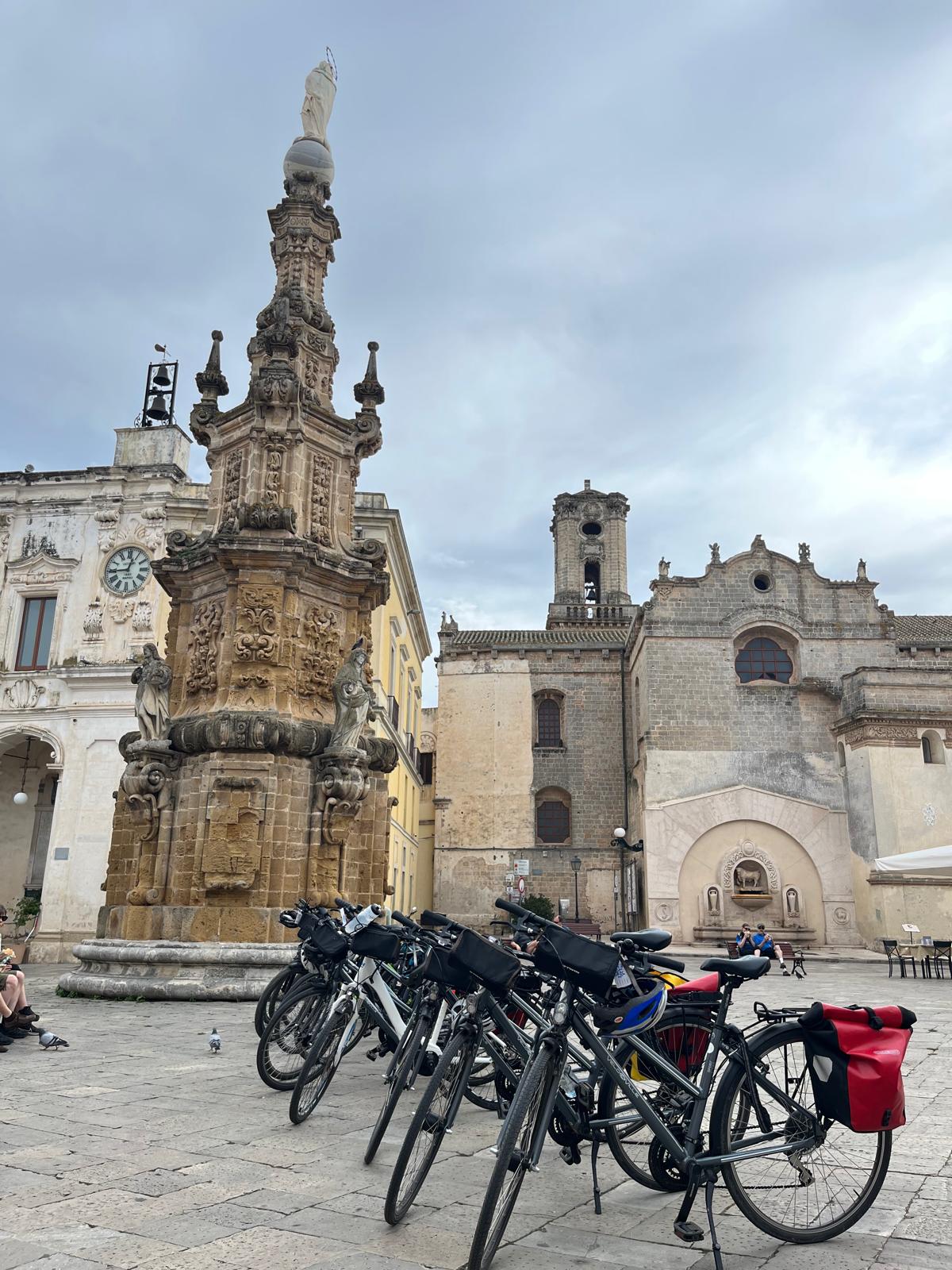 Pyöräilette ympyräreitin Gallipolista käsin sisämaahan, tutustuen matkan varrella esim. Galatinan kaupunkiin kauniine katedraaleineen, ja Aleziossa rauniohin, joita asuttivat muinaiset messapialaiset. (A)