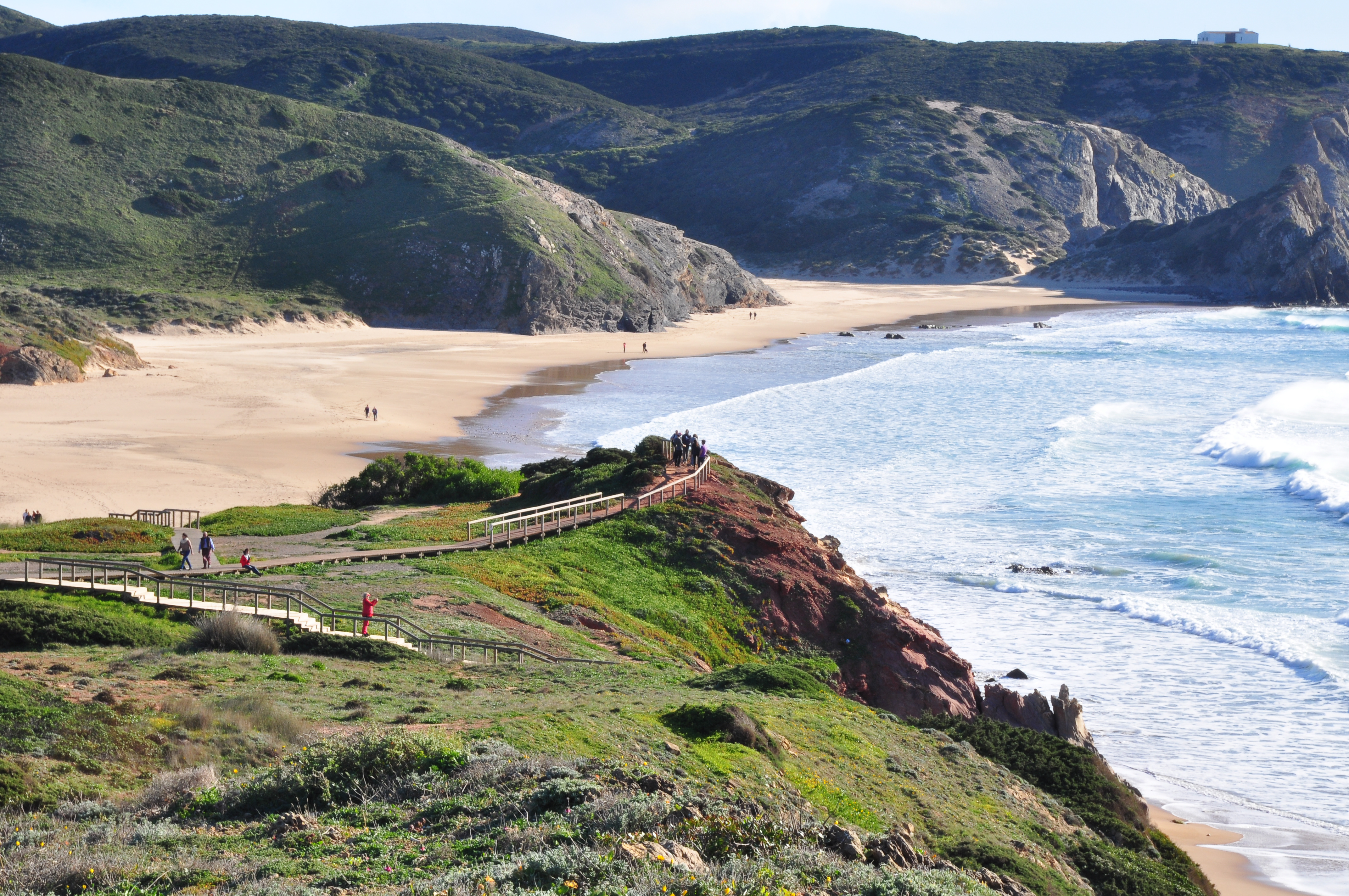 Pyöräily jatkuu etelään rannikkoa seuraillen pitkin historiallista Rota Vicentinan reittiä. Ohitatte päivän aikana useita kauniita kyliä, kuten Longueiran ja Almograven. Matkan varrella voi vierailla Cabo do Sardãon niemellä ja sen vaikuttavalla majakalla luonnonkauniissa koskemattomassa ympäristössä, josta on henkeäsalpaavat näkymät jyrkälle rannikolle ja sen monille saavuttamattomille rannoille. Täältä reitti jatkuu Zambujeira do Marin pieneen kalastajakylään, jonka viihtyisä ja kaunis ranta on yksi sen tärkeimmistä nähtävyyksistä, ja edelleen peltojen ja kukkuloiden halki Odeceixen rannalle, joka on myös surffaajien suosiossa. Yöpyminen Odeceixessä. (A)
