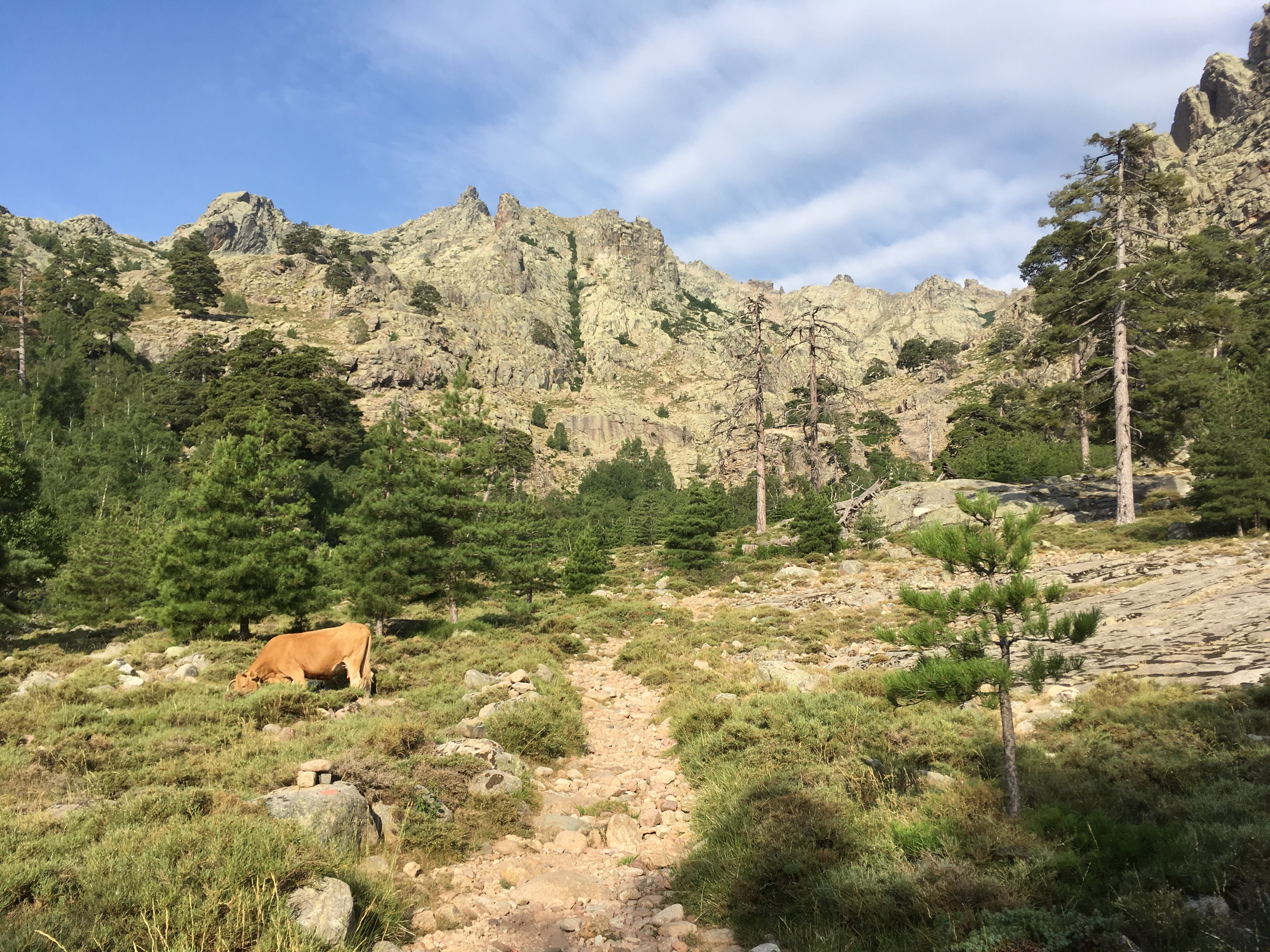 Lyhyt autokuljetus kuljettaa teidät Cortesta ensimmäisen patikointiretken alkuun Scala di Santa Reginassa. Täältä lähtevä polku on vanha laidunpolku, jota paimenet käyttivät johdattaessaan laumojaan Niolu-laaksoon ja sieltä pois. Seuraatte reittiä alas kohti järveä ja Calacuccian kylää, jonne majoitutte seuraavaksi yöksi. (A,I)
