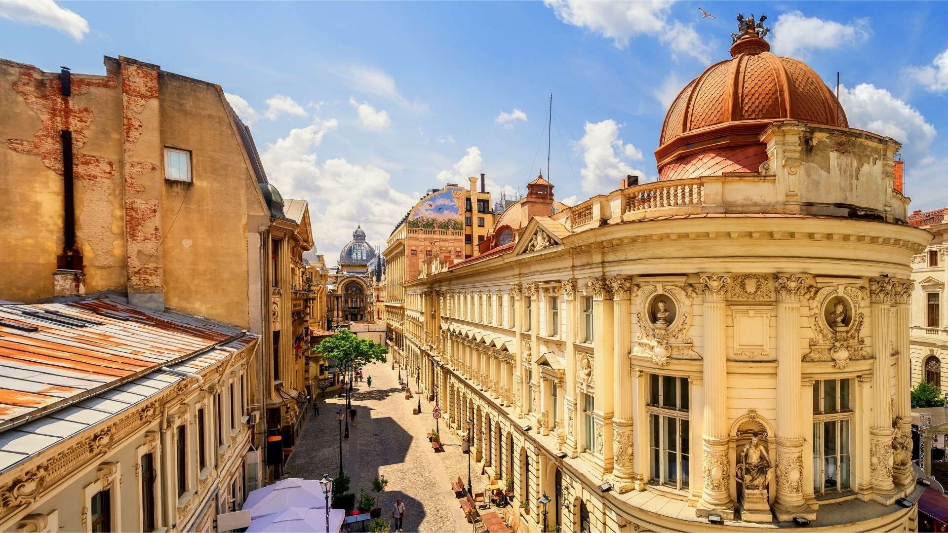 Lennot Suomesta Riian kautta Romanian pääkaupunkiin, Bukarestiin, ja kuljetus hotelliin, jonne majoitumme matkan ensimmäiseksi yöksi. Teemme iltapäivällä noin 3 tunnin kaupunkikierroksen kävellen Bukarestin keskustassa ja vanhassakaupungissa ennen yhteistä tervetuliaisillallista paikallisessa ravintolassa. (I)